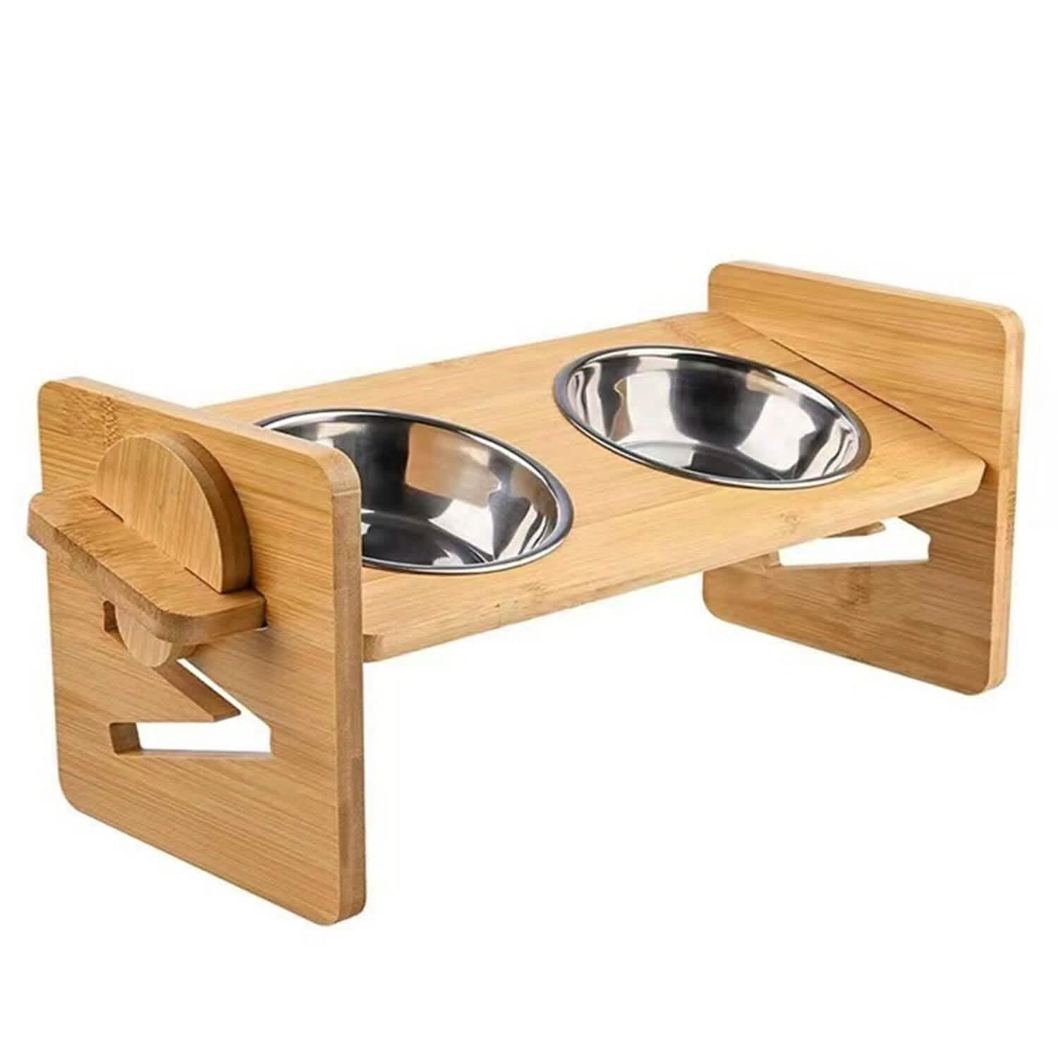 5°Tilt Bamboo Double Elevated Dog Bowls with 4 Adjustable Heights