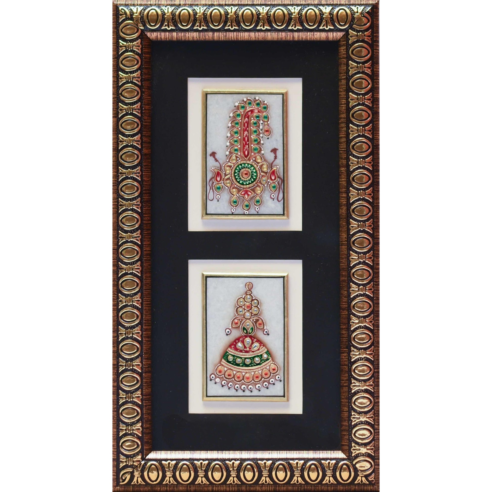 Handcrafted Jewelry Painting, Gold Leaf Meenakari Art, Two Marble Miniature - Wall decor