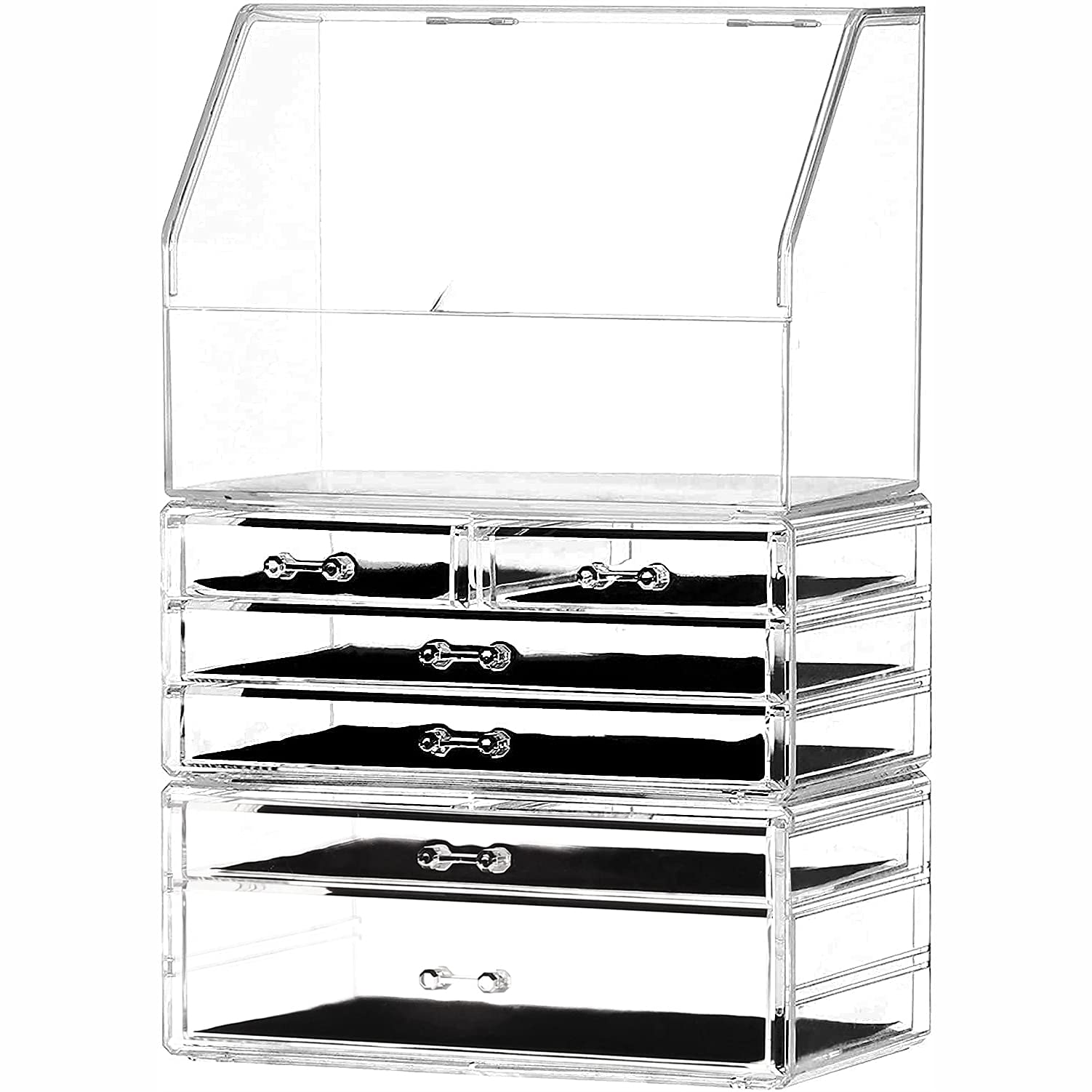 Cq acrylic Cosmetic Display Cases With LId Dust Water Proof for Bathroom Countertop Stackable Large Clear Makeup Organizer and Storage With 6 Drawers,Set of 3