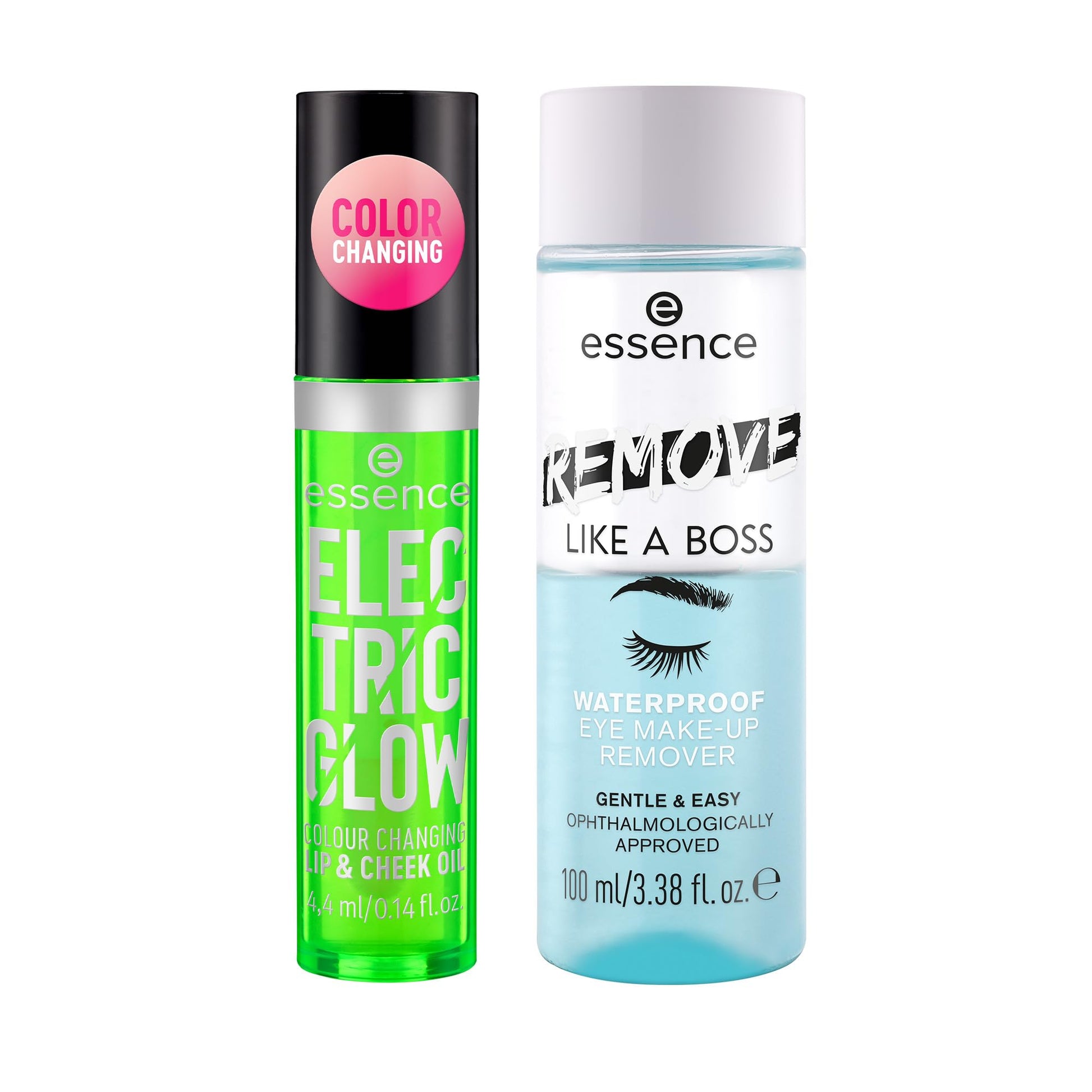 essence Electric Glow Color Changing Lip & Cheek Oil & Remove Like a Boss Waterproof Eye & Face Makeup Remover Bundle | Vegan & Cruelty Free