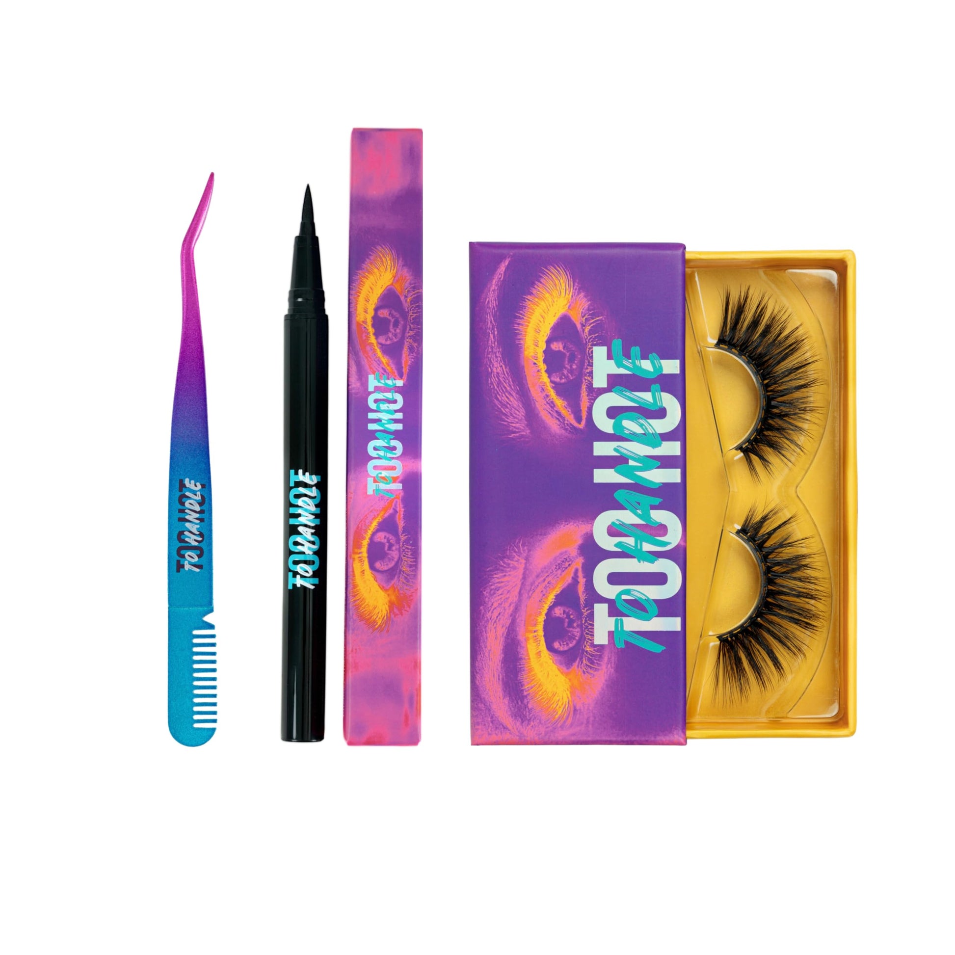 Too Hot To Handle Starter Kit - Too Vibrant | Long magnetic Faux Mink magnetic eyelashes + magnetic pen eyeliner + Tweezer